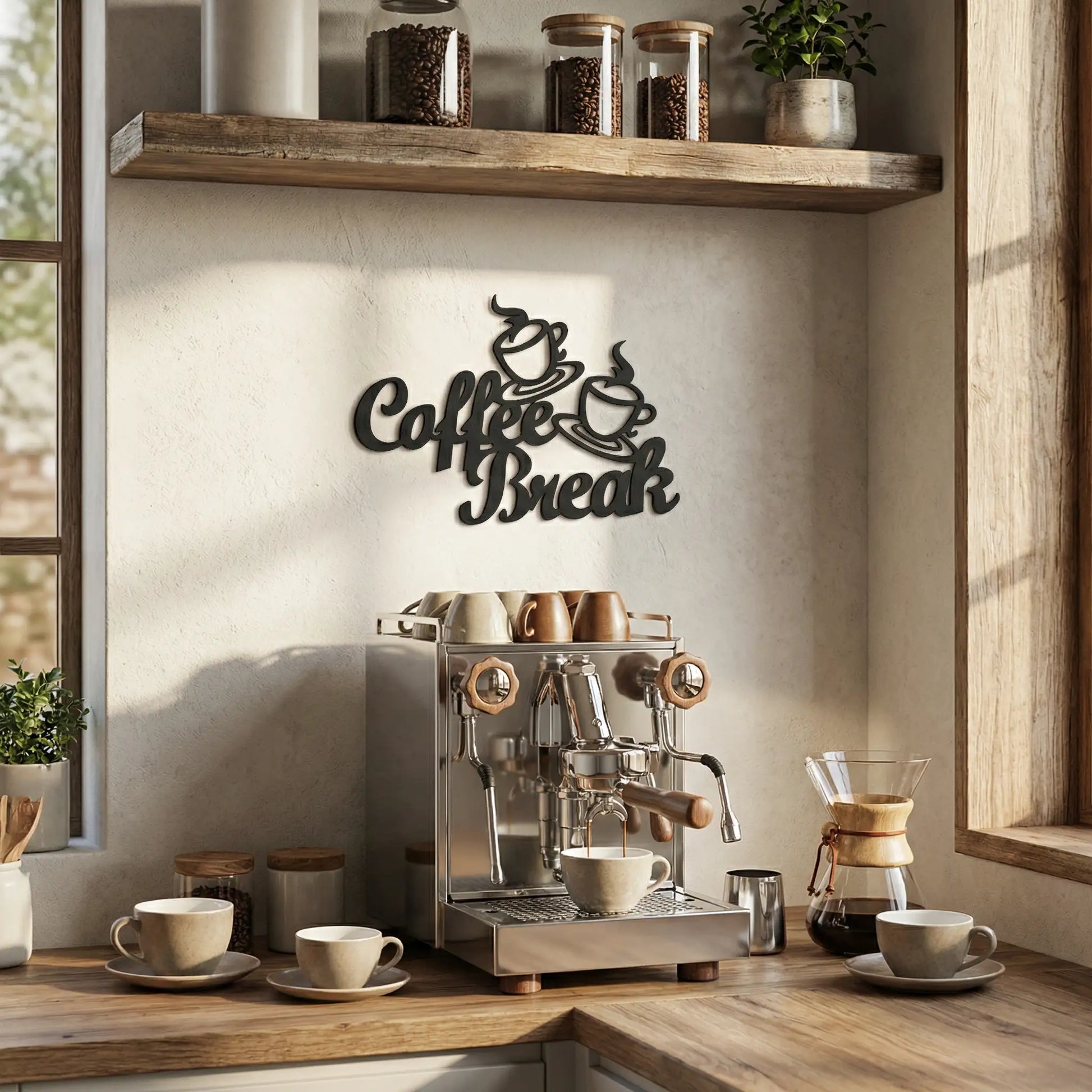 Ontdek de stijlvolle wanddecoratie, perfect voor iedere koffie liefhebber. Deze wanddecoratie wordt gemaakt uit 4mm dik MDF en heeft de tekst 'Coffee Break' , welke bijvoorbeeld geschikt is voor in de keuken. De wanddecoratie is verkrijgbaar in verschillende afmetingen en past daardoor perfect in elke keuken, kantoor of koffiecorner.