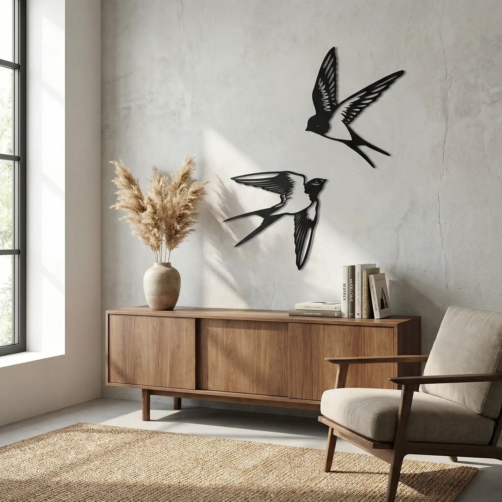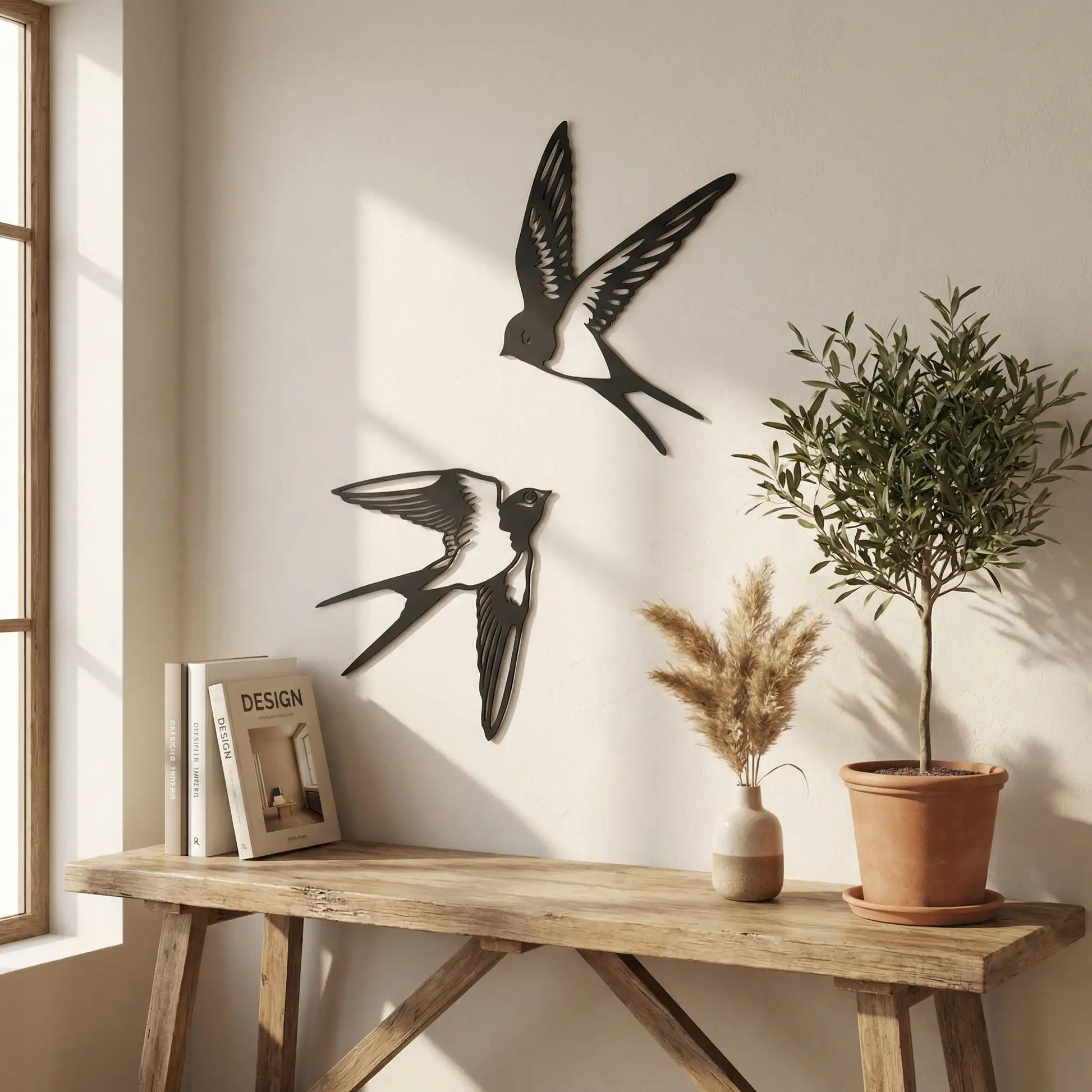 Onze houten wanddecoratie met het zwaluw koppel is gemakkelijk op te hangen met dubbelzijdig tape (dit wordt niet standaard meegeleverd). Of u nu een landelijk, modern of industrieel interieur heeft, deze wanddecoratie zal zeker tot zijn recht komen.